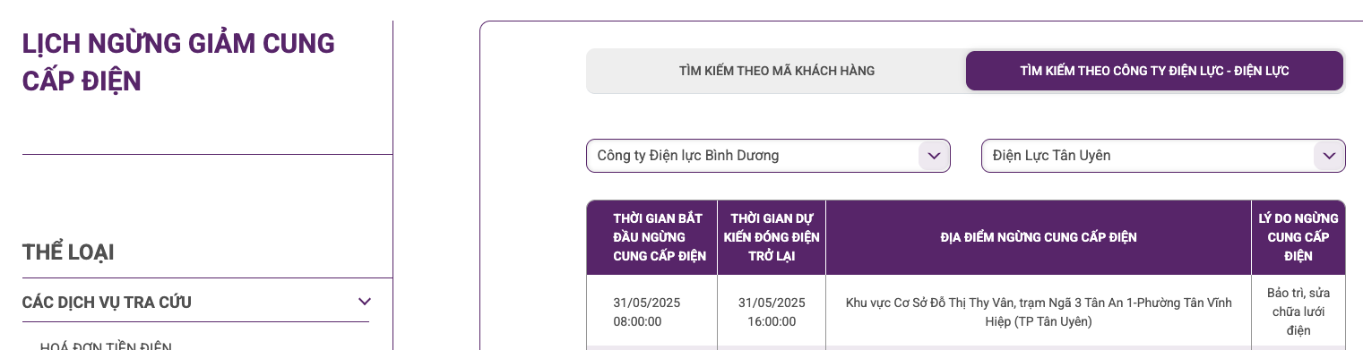 Để cập nhật lịch cắt điện Bình Dương, người dân có thể truy cập: Lịch cắt điện Bình Dương.