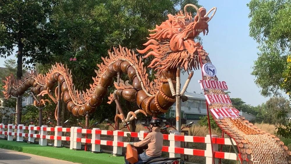Bức tượng linh vật rồng, uốn lượn mềm mại như đang múa bay từ những chiếc lu sành tại đầu đường Hồ Văn Cổng khiến người dân và du khách không khỏi tò mò và thích thú. Không chỉ là biểu tượng của sự may mắn, linh vật còn thể hiện tạo sự sáng tạo kết hợp với nghệ thuật dân gian. Đồng thời trong số linh vật rồng 2024 các tỉnh, đây là linh vật nêu cao tinh thần bảo vệ môi trường.