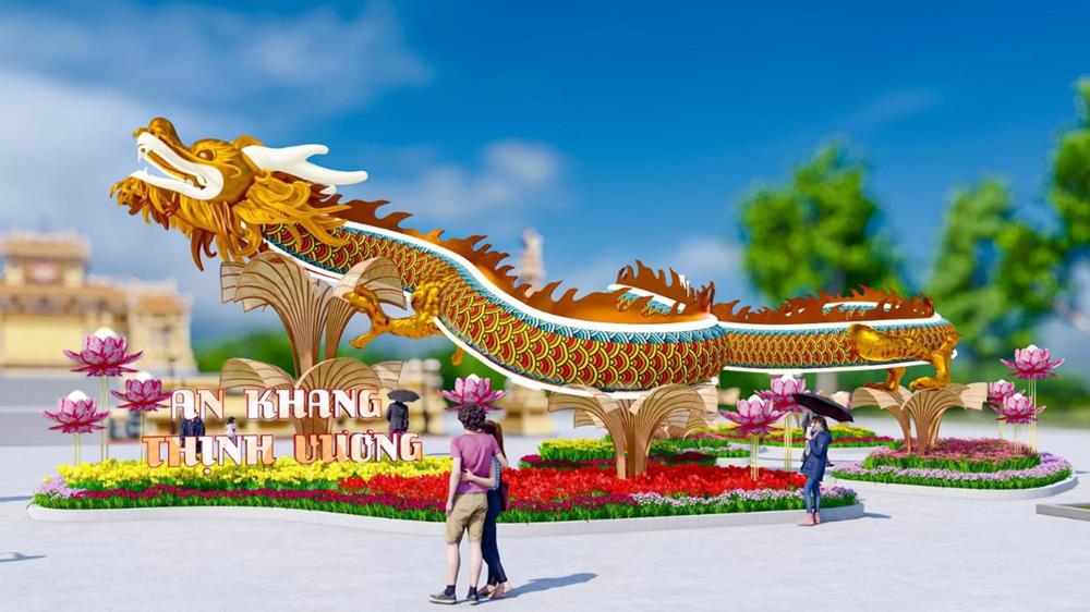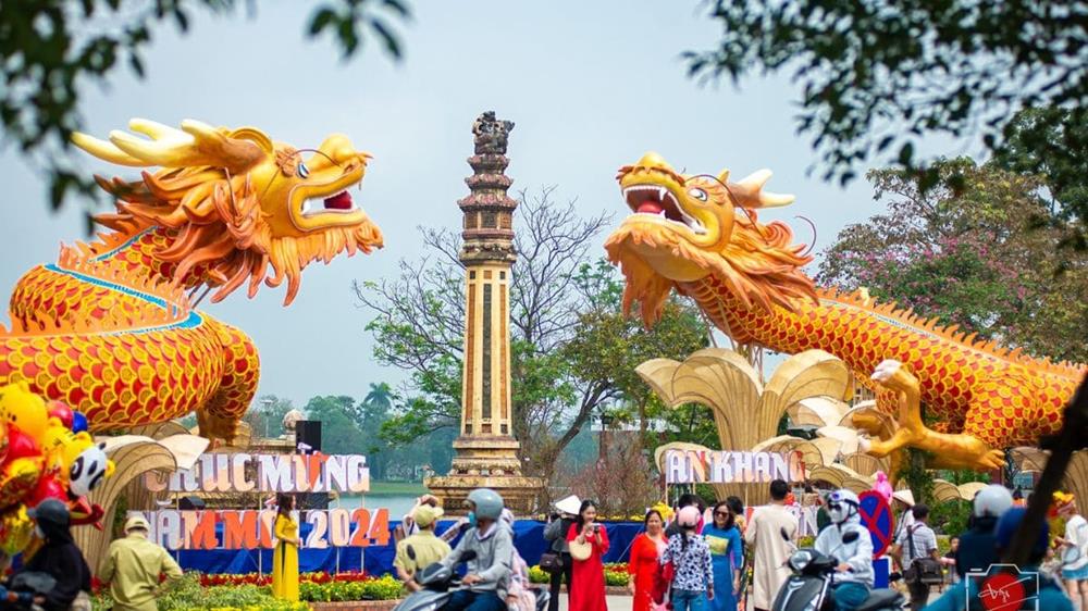 Tượng song long - Tinh hoa đất trời - Chuyển mình bứt phá là một biểu tượng tại lễ hội xuân Giáp Thìn 2024 tại công viên Lý Tự Trọng - Huế. Thiết kế chi tiết lấy cảm hứng từ công trình cung điện, lăng tẩm và đền chùa cổ kính của cố đô độc đáo so với linh vật rồng 2024 các tỉnh. Đây là cách thể hiện nét đẹp văn hóa đồng thời bài tỏ hy vọng về một cuộc sống mưa thuận gió hòa, êm ấm và ổn định.