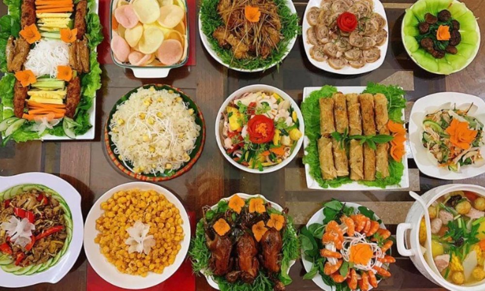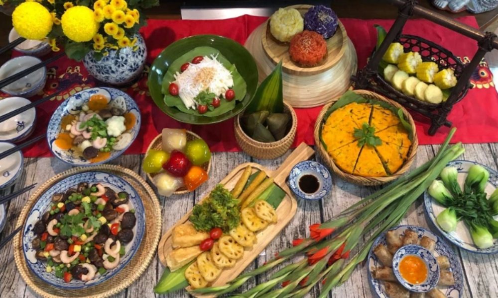 - Các món chay: Đậu phụ, nộm, rau củ quả.