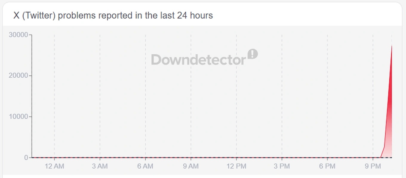 Theo ghi nhận từ chuyên trang theo dõi sức khỏe mạng xã hội Downdetector, có gần 30.000 người dùng trên toàn cầu đã gửi thông báo về việc gặp sự cố khi truy cập mạng xã hội X.