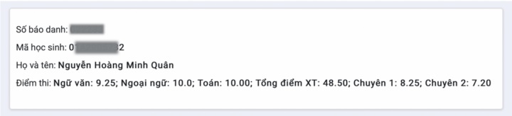 Minh Quân đạt 48,5/50 điểm thi vào 10. Ảnh chụp màn hình