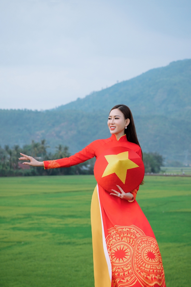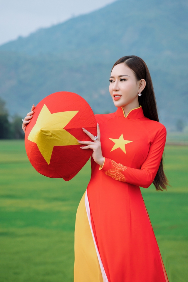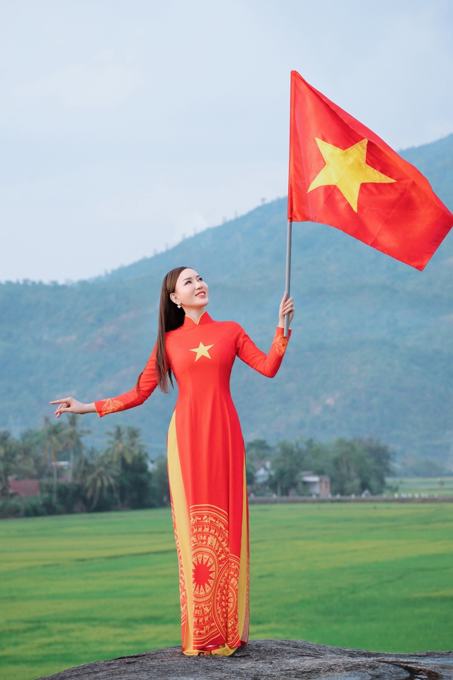 Thay vì chọn dạ hội, vương miện, Thùy Dung chọn áo dài cờ đỏ sao vàng
