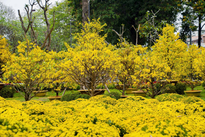 Trên toàn bộ 4,3 ha công viên là các vườn hoa, tiểu cảnh mang đậm bản sắc Tết.