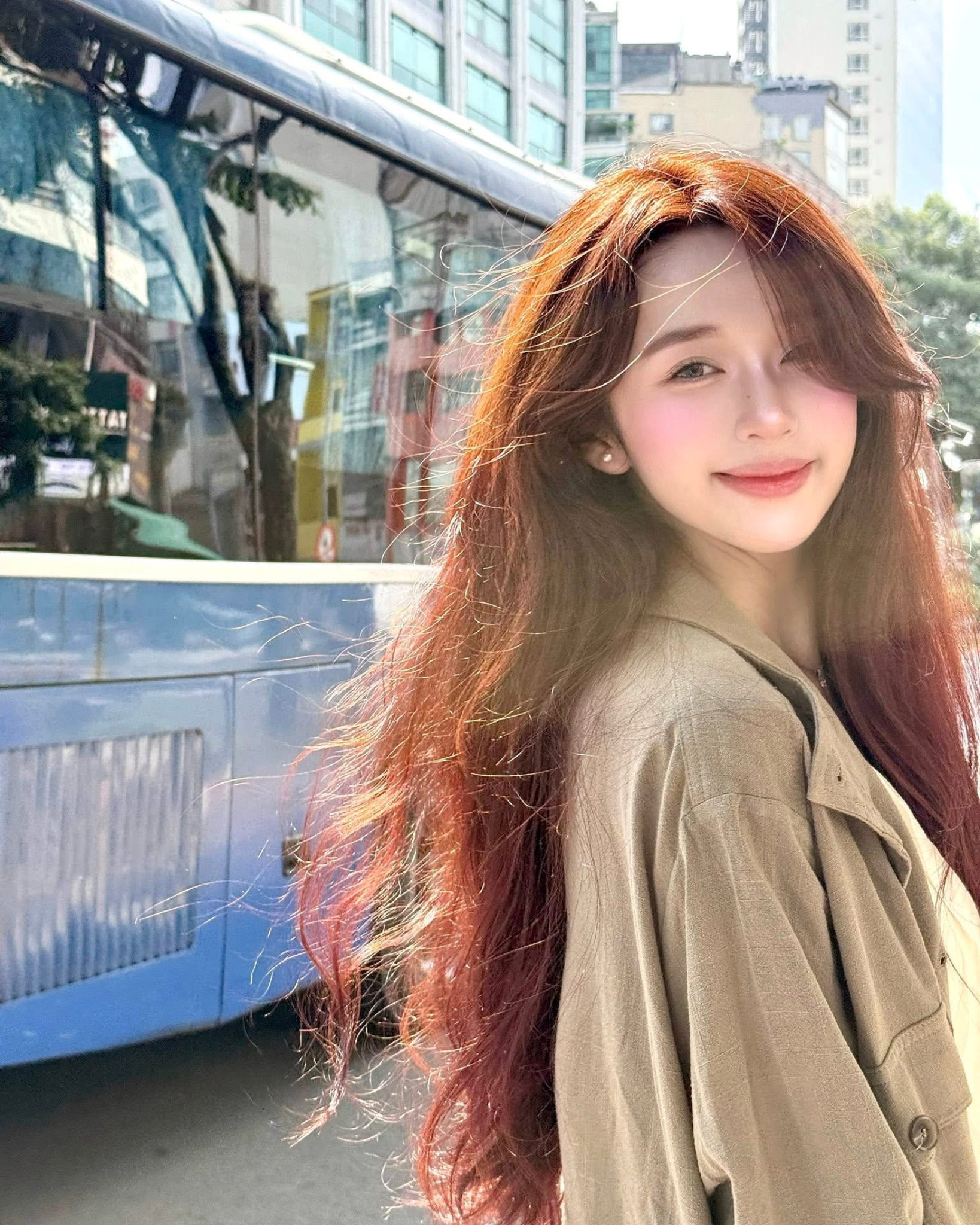 Dù là khi đang thưởng thức ẩm thực hay lúc thả dáng bên khung cửa gỗ, Karty Chang đều giữ được phong thái tự tin, sang chảnh. Màu tóc nâu đỏ rực rỡ dưới nắng càng làm nổi bật tông da và tạo nên vẻ ngoài vừa trẻ trung, vừa cá tính.