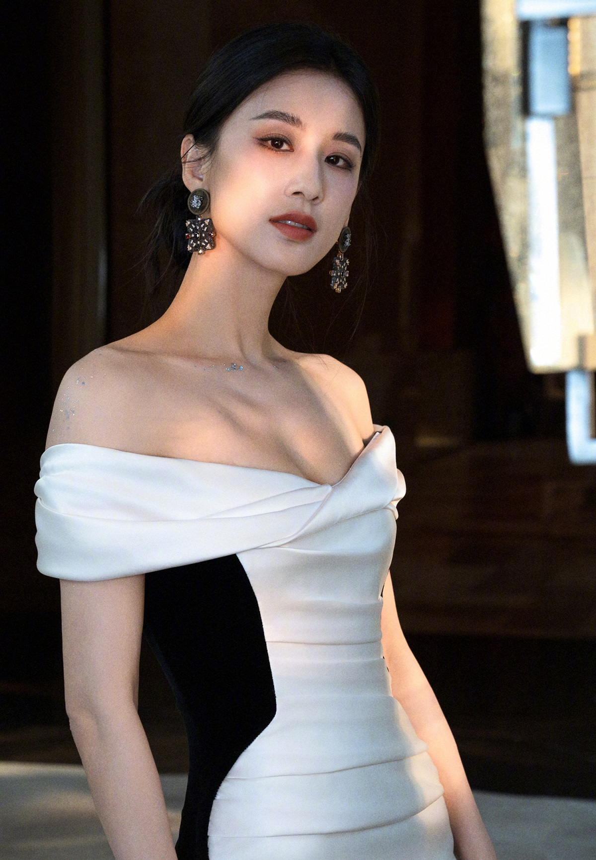 Tại sự kiện khác trong khuôn khổ liên hoan phim, cô chọn váy trễ vai đen, trắng.