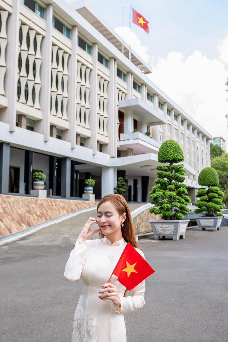 Hoa hậu Đoàn Thiên Ân diện áo dài trắng "dạo phố ngắm nhìn hòa bình", gây chú ý trước thềm Đại lễ 30/4.