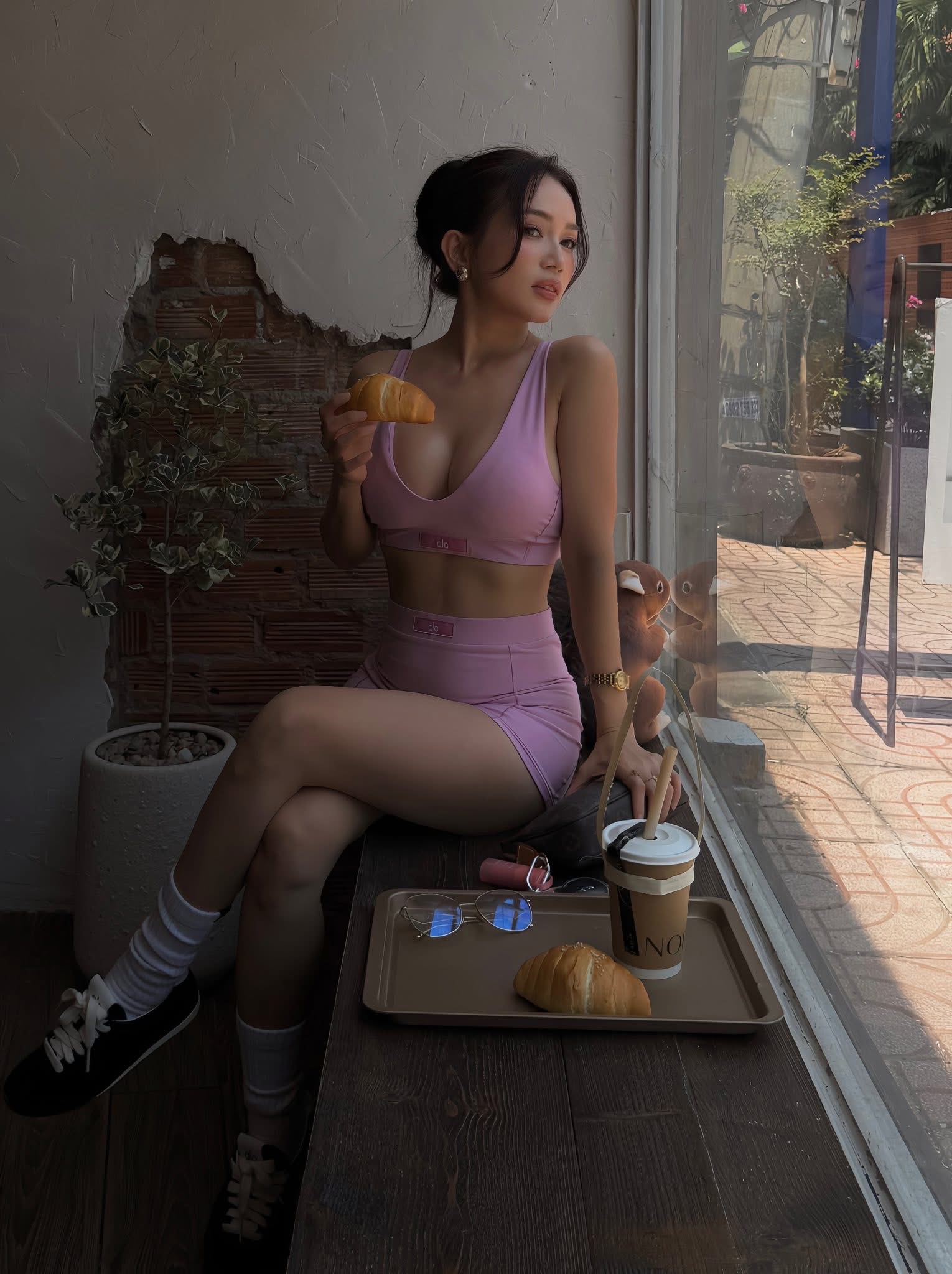Mới đây, một người đẹp đã khiến fan nam "dậy sóng" khi xuất hiện đầy tự tin trong set đồ tập màu hồng rực rỡ, khoe trọn vóc dáng chuẩn chỉnh từ phòng gym ra đến quán cà phê.
