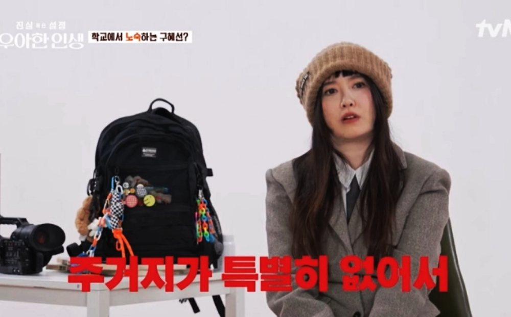 "Tôi đã lãng phí rất nhiều tài sản của mình. Tôi không có nơi nào để sống. Tôi thực sự không có nhà." Goo Hye Sun cũng chia sẻ thêm: "Dĩ nhiên tôi vẫn có thể về nhà mẹ ở Incheon nhưng đối với các kỳ thi hoặc những ngày quan trọng tại trường, tôi buộc phải ngủ trong ô tô hoặc thư viện. Bởi ngay cả khi bạn khởi hành lúc 6:30 sáng thì cũng sẽ mất 3 đến 4 giờ để đi từ Incheon tới trường." Khi MC chương trình Jeon Hyun Moo hỏi tại sao cô không thuê trọ, Goo Hye Sun giải thích mình từng sống ở ký túc xá trường học nhưng hợp đồng đã kết thúc, học kỳ vừa qua, cô không thể tìm được nơi nào cho phép ký hợp đồng trong 3 tháng.