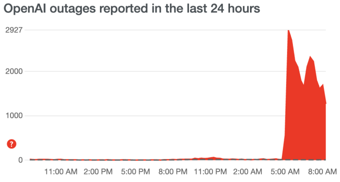 Sự cố ChatGPT được báo cáo trên DownDetector tính đến 8h.