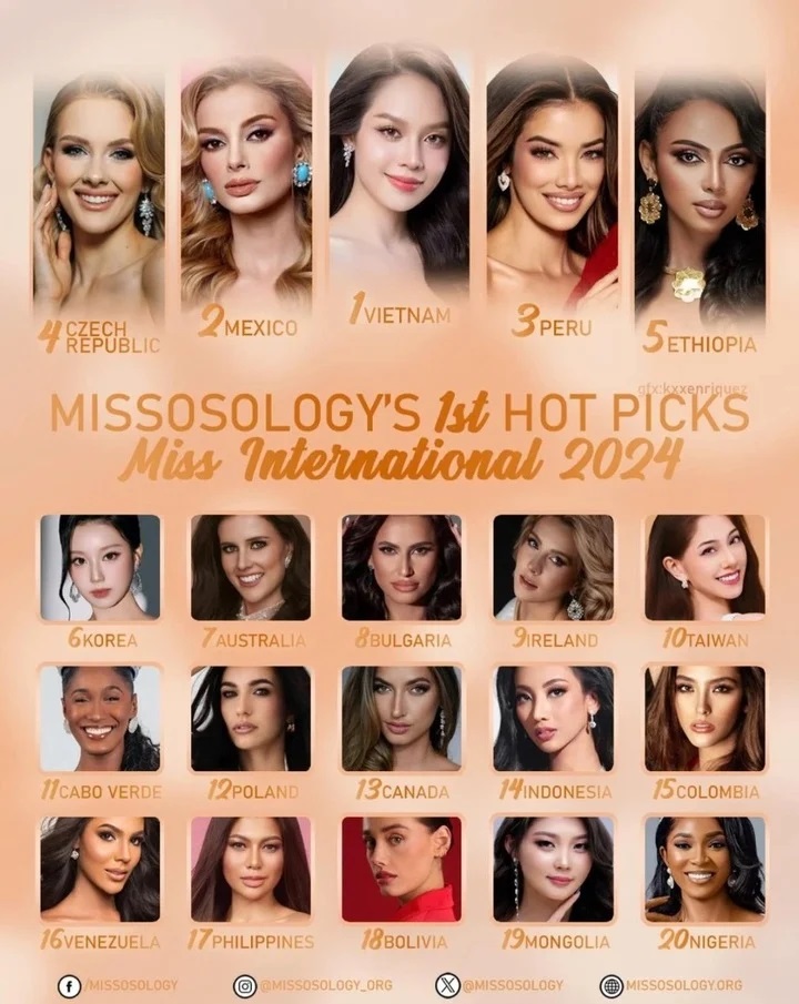 Ngoài ra, trong các bảng dự đoán của một số chuyên trang khác, đại diện Việt Nam cũng liên tục được kêu tên ở vị trí cao trong top 10.