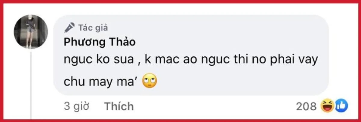 Tuy nhiên, cũng có một số ý kiến cho rằng nữ TikToker đã can thiệp "dao kéo", trùng tu vòng một. Ngay lập tức, Phương Thảo phủ nhận: "Ngực không sửa, không mặc áo ngực thì nó phải vậy chứ".