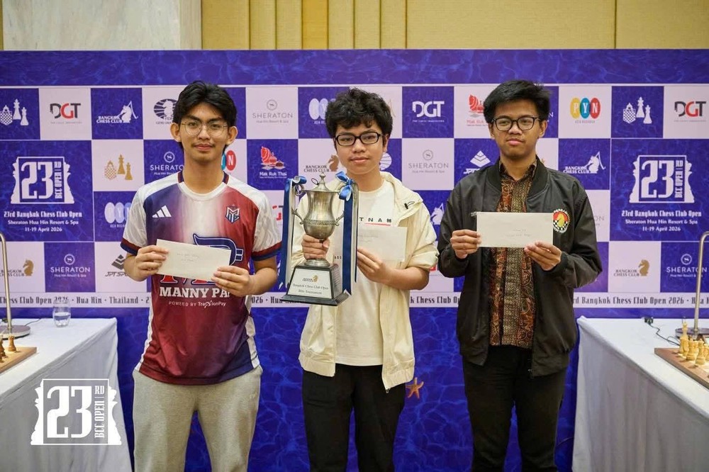 Kỳ thủ trẻ Đầu Khương Duy gây tiếng vang lớn tại Bangkok Chess Club Open 2026 khi giành cú đúp danh hiệu và đạt chuẩn Đại kiện tướng (GM).