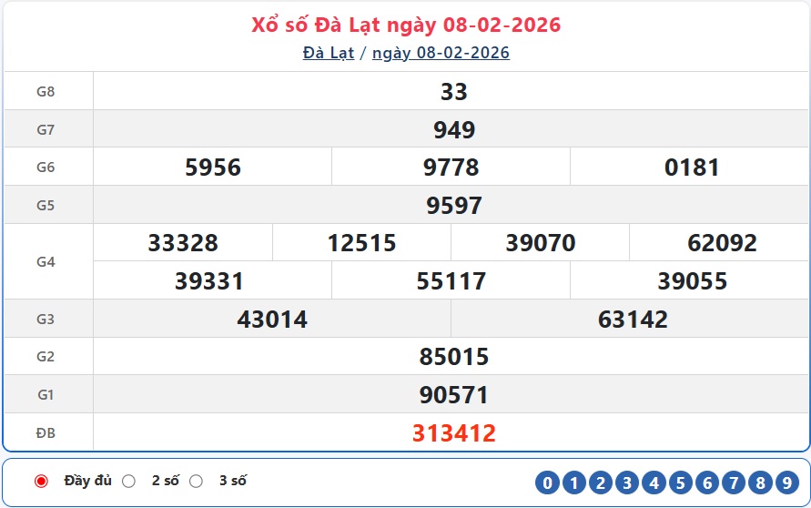 Theo dõi kết quả xổ số Đà Lạt hôm nay 8/2/2026 nhanh chóng và chính xác nhất để không bỏ lỡ thời gian nhận thưởng.