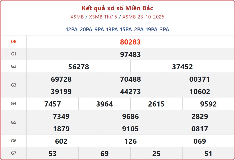 Kết quả Xổ số miền Bắc ngày 23/10/2025