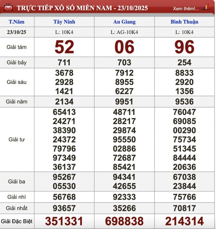 - Kết quả xổ số miền Nam ngày 23/10. KQXSMN 23/10/2025. XSMN 23/10