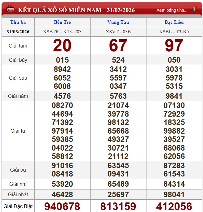 Kết quả xổ số miền Nam ngày 31/3/2026