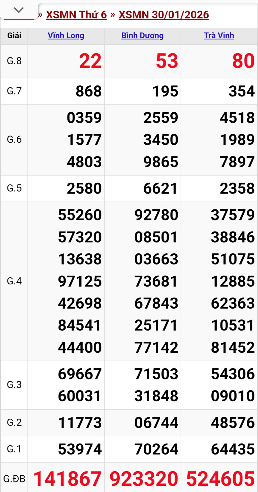 Kết quả xổ số miền Nam ngày 30/1/2026