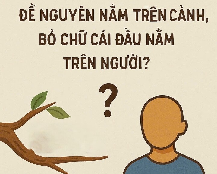 Câu đố này có nội dung như sau: "Từ nào trong tiếng Việt để nguyên nằm trên cành, bỏ chữ cái đầu nằm trên người?".