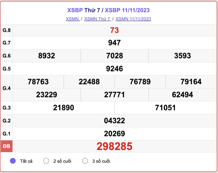- Kết quả XSBP ngày 11/11/2023