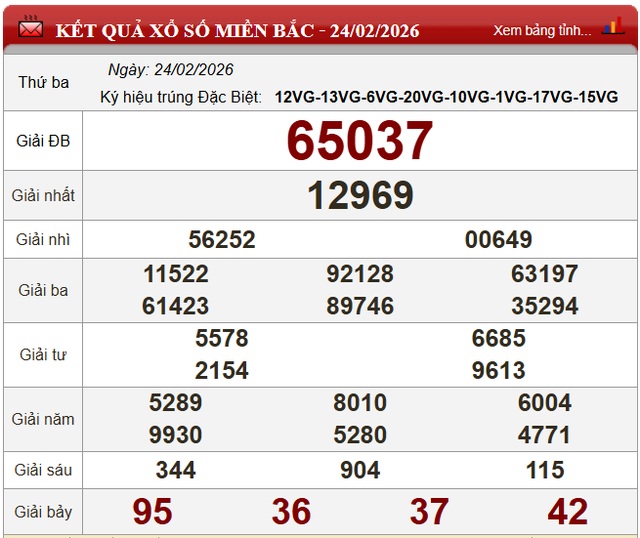 Kết quả Xổ số miền Bắc ngày 24/2/2026