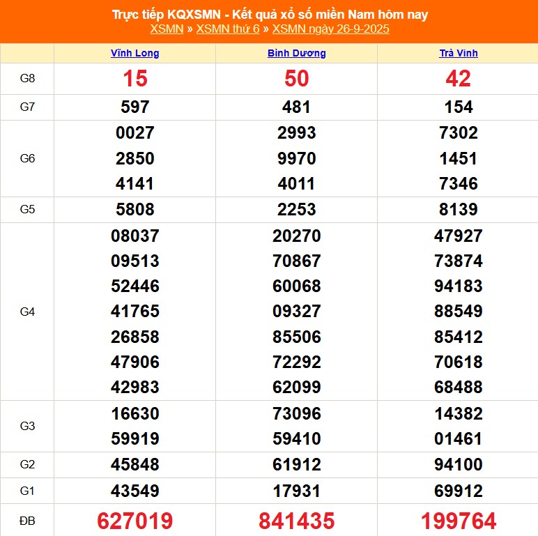 - Thứ Sáu: Kết quả XSMN đến từ các đài Bình Dương, Vĩnh Long và Trà Vinh.