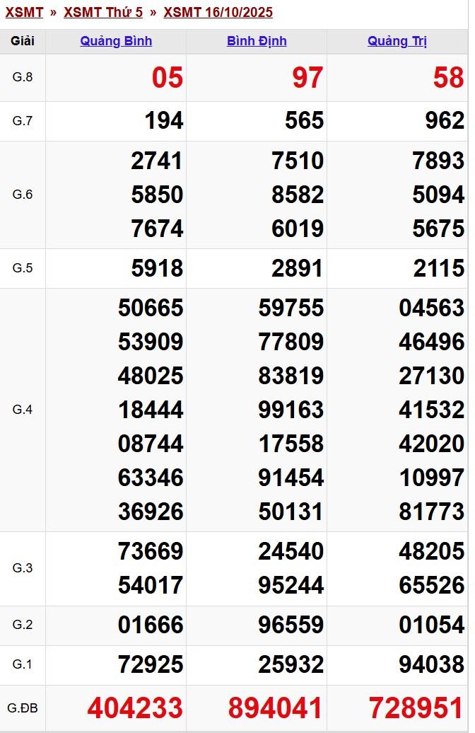 Kết quả xổ số miền Trung (XSMT) hôm nay ngày 16/10