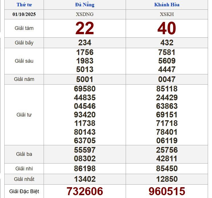 Kết quả xổ số miền Trung (XSMT) hôm nay ngày 1/10