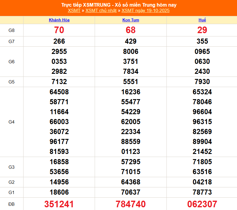 Kết quả xổ số miền Trung (XSMT) hôm nay ngày 19/10