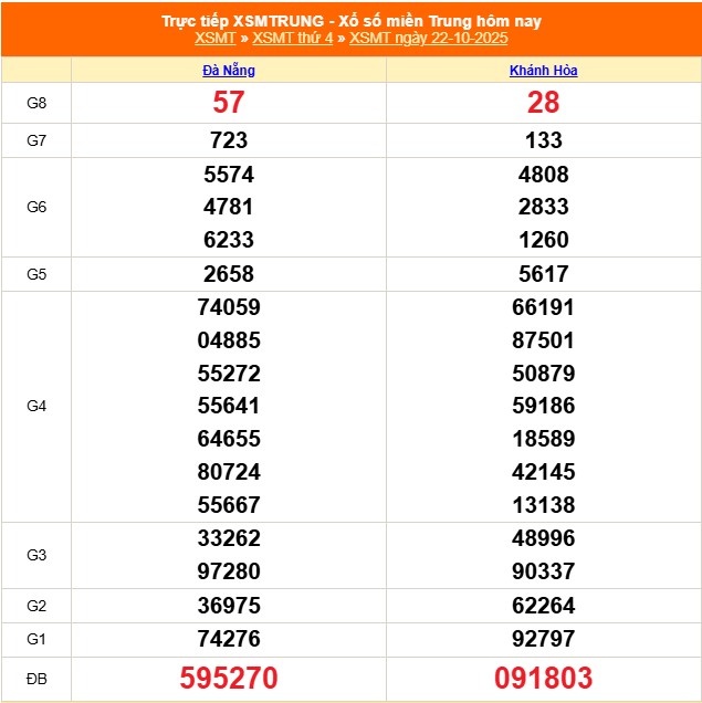 Kết quả xổ số miền Trung (XSMT) hôm nay ngày 22/10