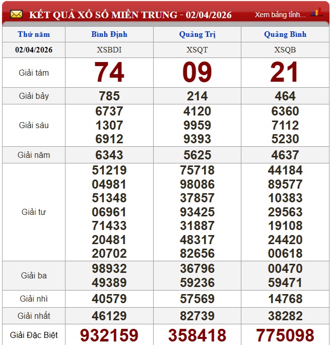 Kết quả xổ số miền Trung (XSMT) ngày 2/4