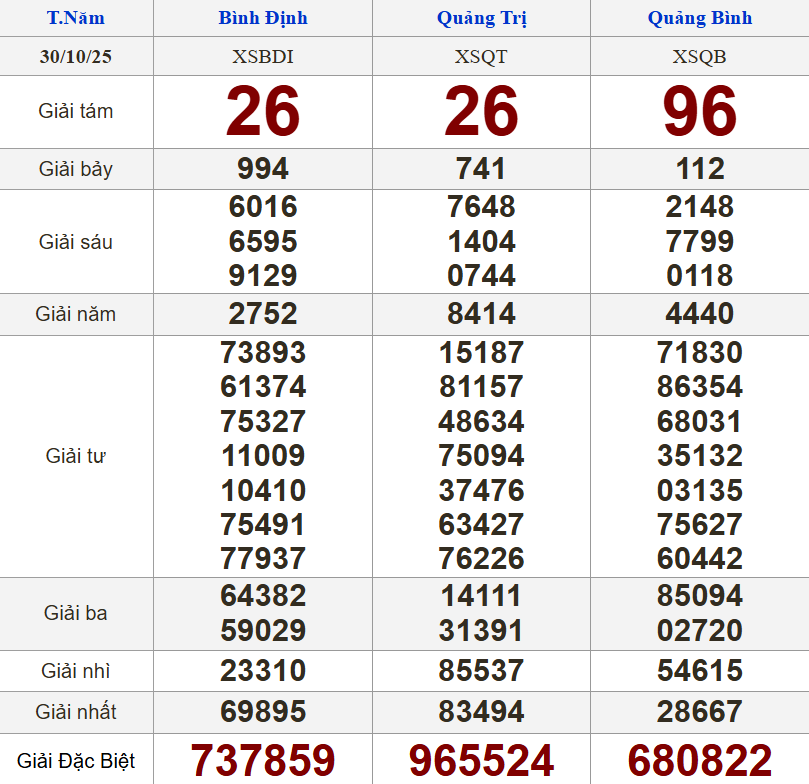 Kết quả xổ số miền Trung (XSMT) hôm nay ngày 30/10