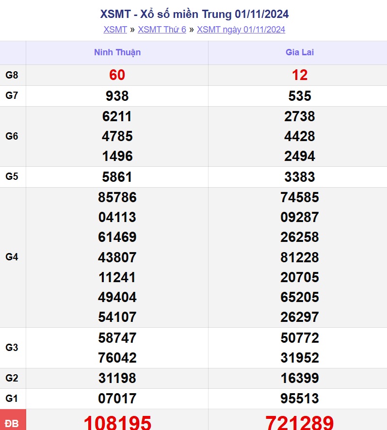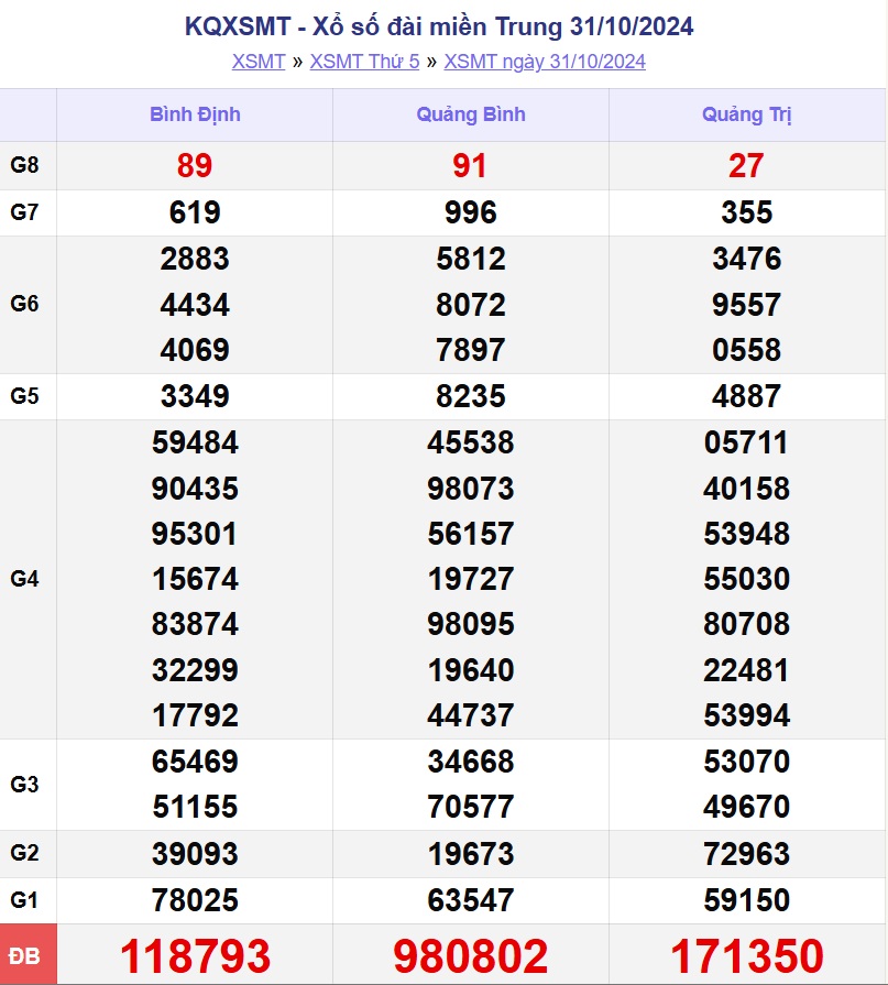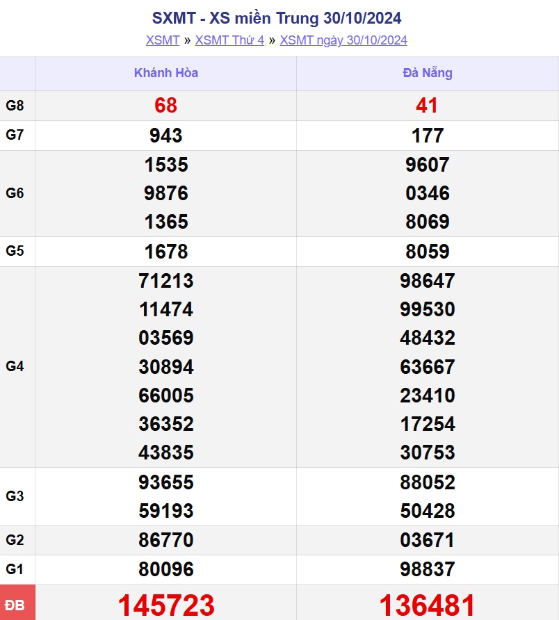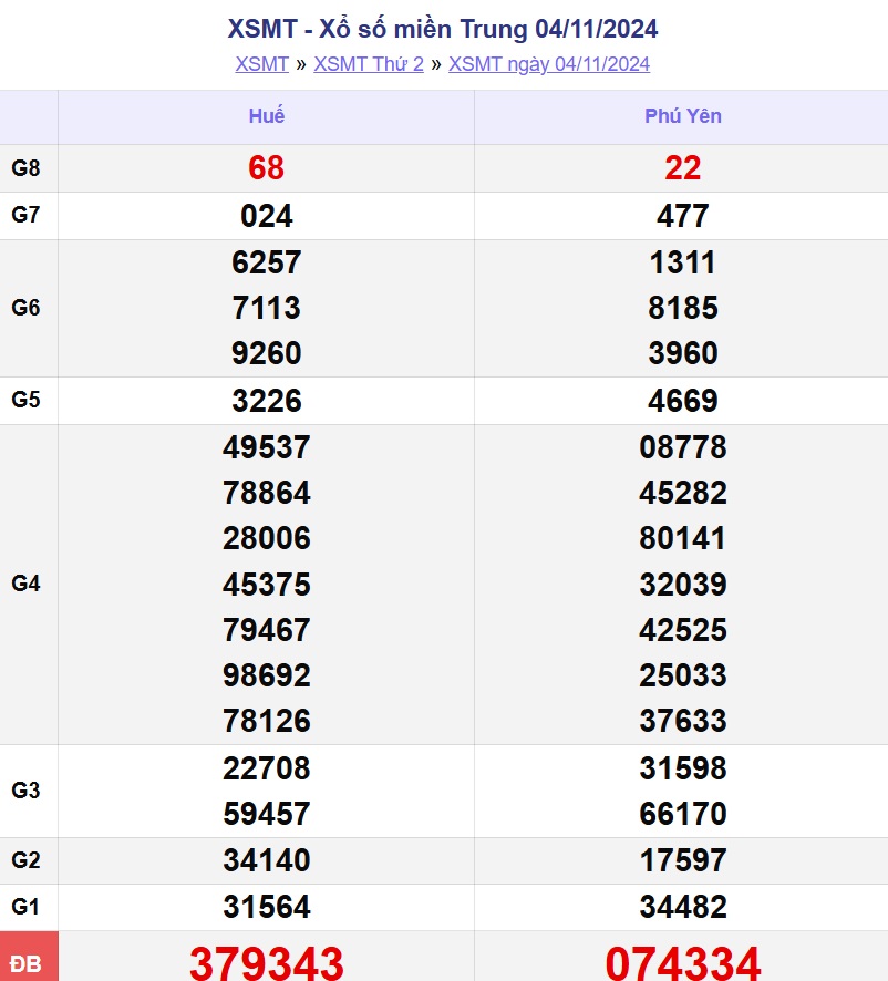 XSMT 5/11. Kết quả xổ số miền Trung hôm nay thứ Ba ngày 5/11/2024 sẽ được cập nhật trực tiếp trên LDG. Kết quả các giải thưởng của XSMT ngày 5/11/2024 được công bố lần lượt từ giải nhất đến giải tám, cuối cùng là giải đặc biệt.